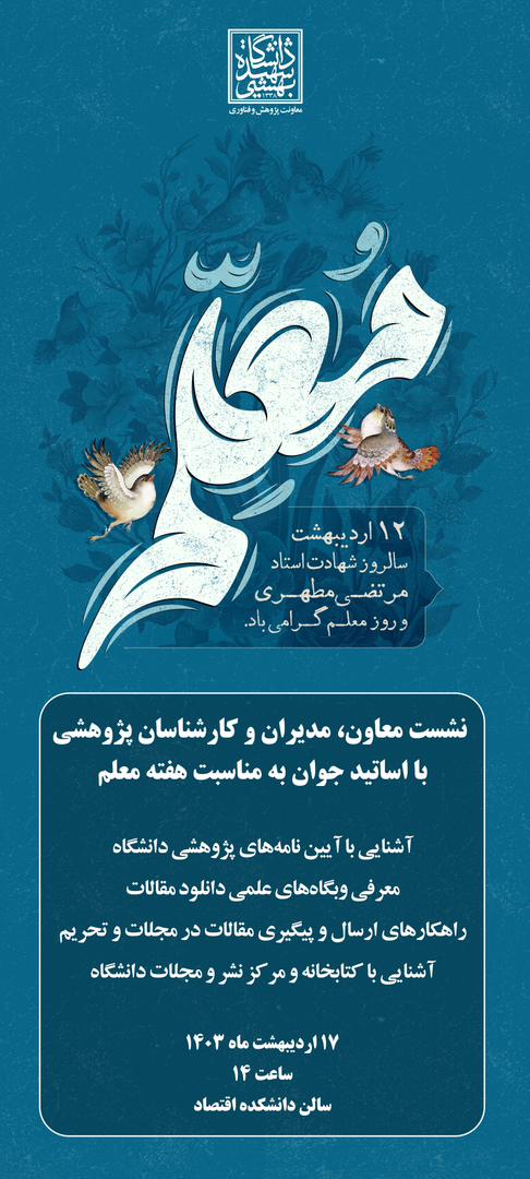 به مناسبت روز معلم (12 اردیبهشت‌ماه)، معاونت پژوهشی برگزار می کند: